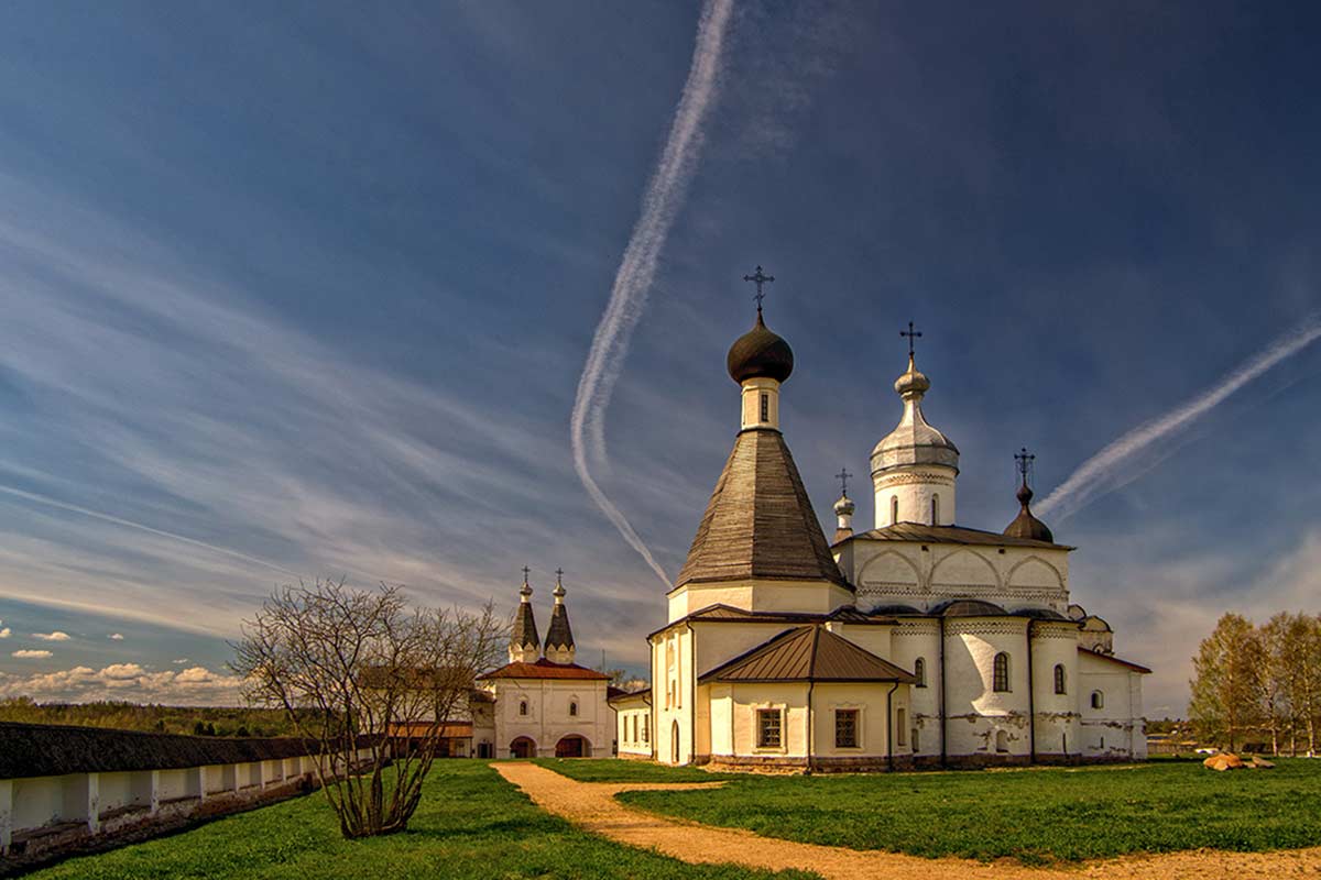 Две надвратные церкви, входящие в ансамбль Ферапонтова монастыря – Богоявления и преподобного Ферапонта. Это уникальный пример в монастырской архитектуре: над двумя вратами – узкими, будничными и широкими, праздничными – возвышаются два шатра. Оба храма являются памятниками архитектуры середины XVII века, в них сохранился подлинный плиточный пол, деревянные пристенные жертвенники и резной иконостас XVIII века. В местном ряду – образ Богоматери «Скоропослушницы», написанный на греческом Афоне.