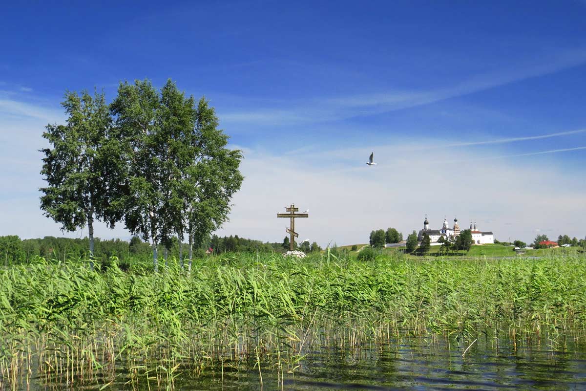 Остатки рукотворного каменного острова в Бородаевском озере, на котором стоит поклонный крест, сохранились со времен ссылки патриарха Никона. Опальный патриарх провел в ссылке в Ферапонтово 10 лет. Остров – как место для его молитв – возвели для него монахи, которых дали Никону в помощники, когда тот временно примирился с великим князем Алексеем Михайловичем.
