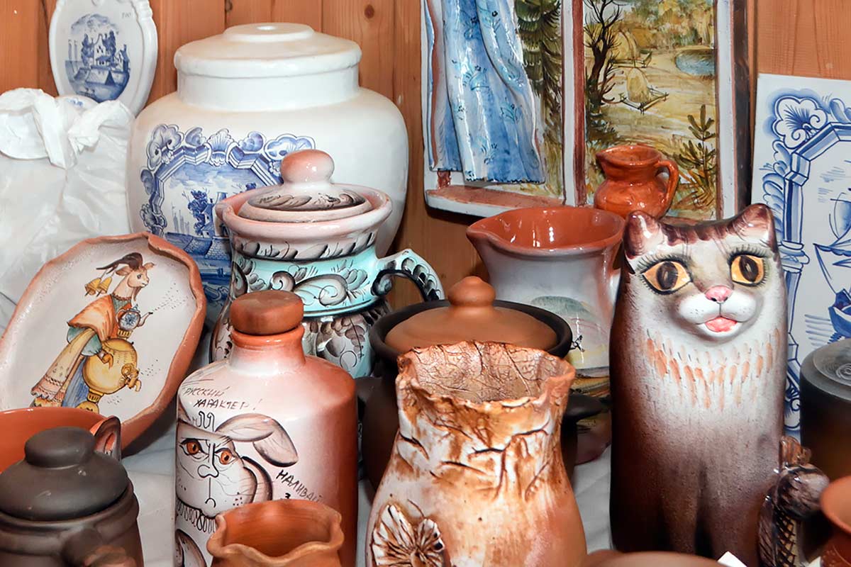 Готовая продукция куракинских керамистов – от маленьких свистулек до больших керамических полотен – можно приобрести в сувенирной лавке, которая находится прямо под монастырем. Здесь же можно купить и печные изразцы, выполненные по странным образцам.