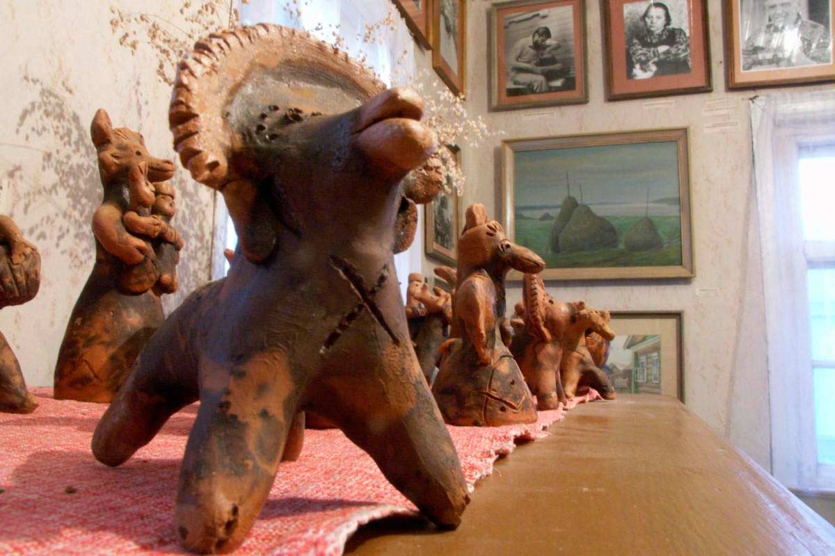 Музей мастеров Шевелевых, потомственных мастеров по гончарному делу. Хозяевам музея – братьям Шевелевым за 85 лет. На своих мастер-классах по глиняной игрушке они не просто работают руками, но и нараспев рассказывают старинные сказки – как учили сказители из позапрошлого столетия. Сам процесс изготовления игрушек и глиняной посуды принципиально отличается от мастер-классов по традиционной каргопольской игрушке. Шевелевы – приверженцы старины, освоенный ими производственный процесс идентичен работам многовековой давности. Например, игрушки не расписывают, а закаливают в специальном растворе - мучной болтушке, посуду же делают из глиняных жгутиков.