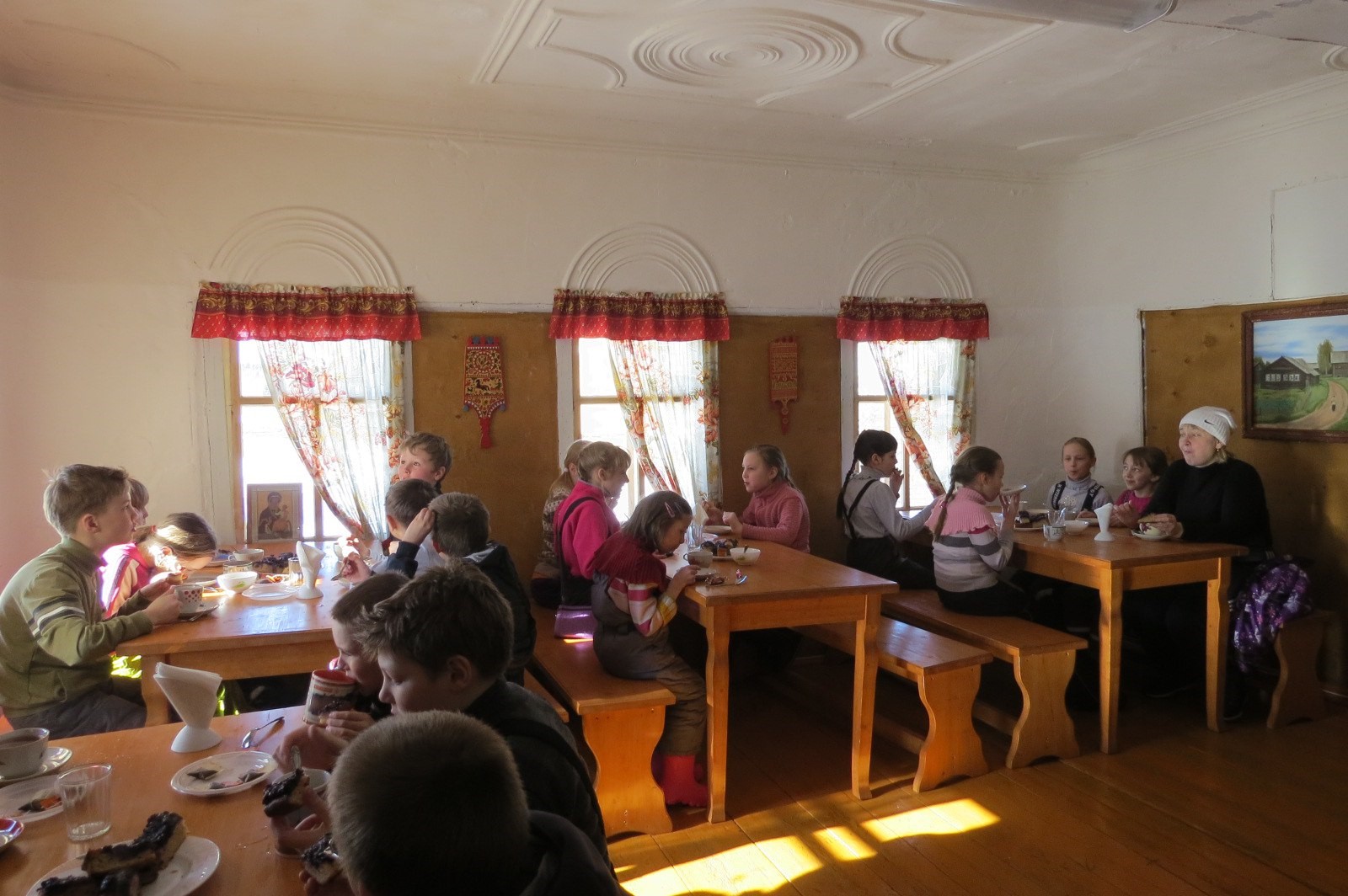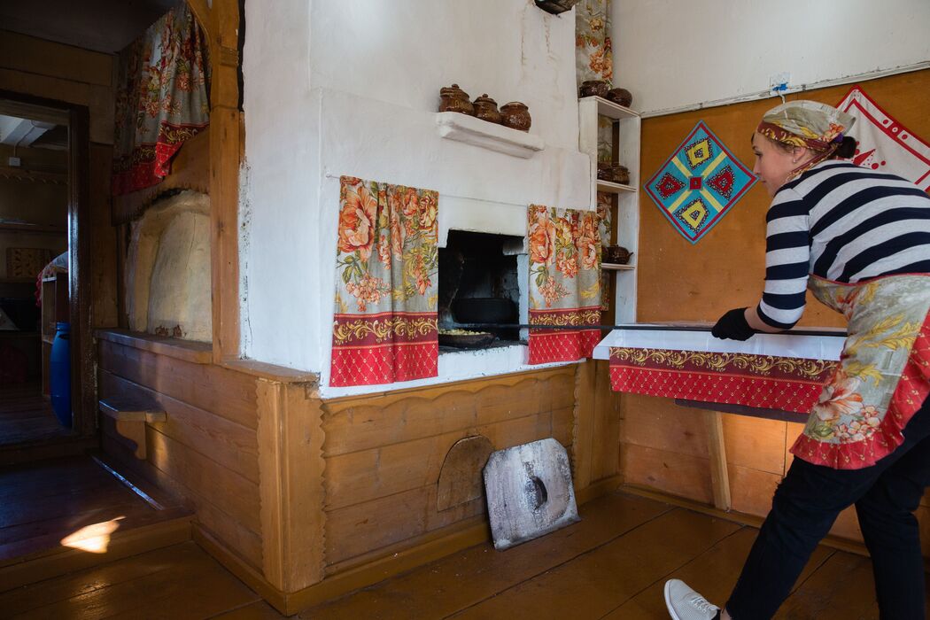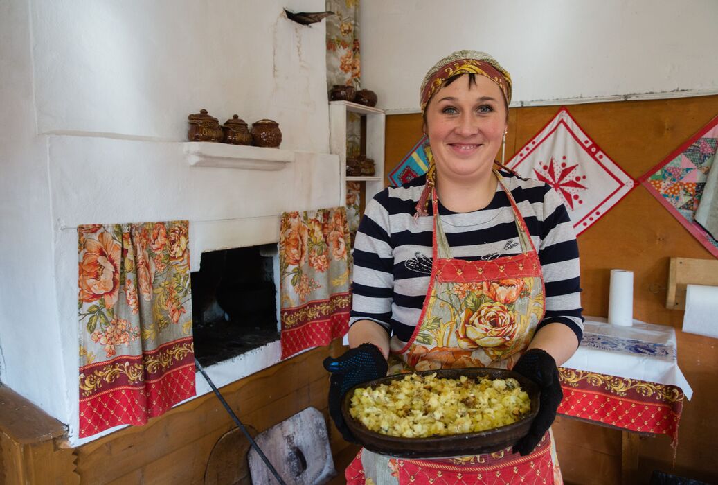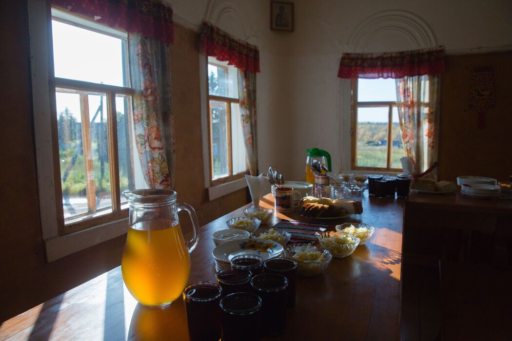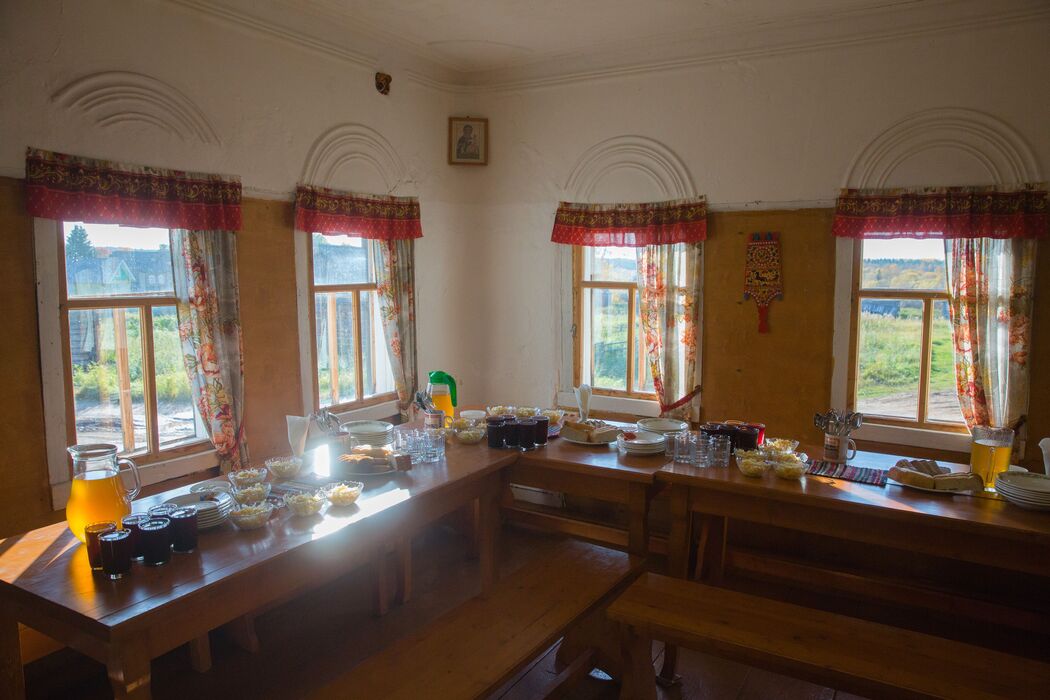 Кимженска Паужна. (прим. ред. паужна – прием пищи между обедом и ужином). Самобытная столовая в деревенском доме, блюда местной традиционной кухни готовятся в русской печи.