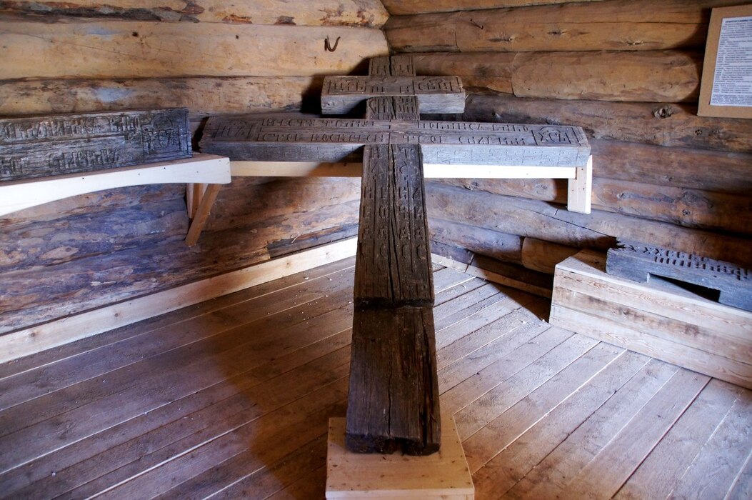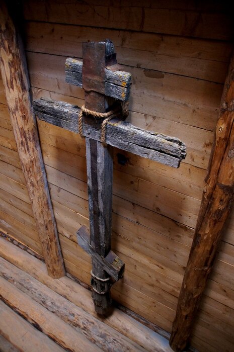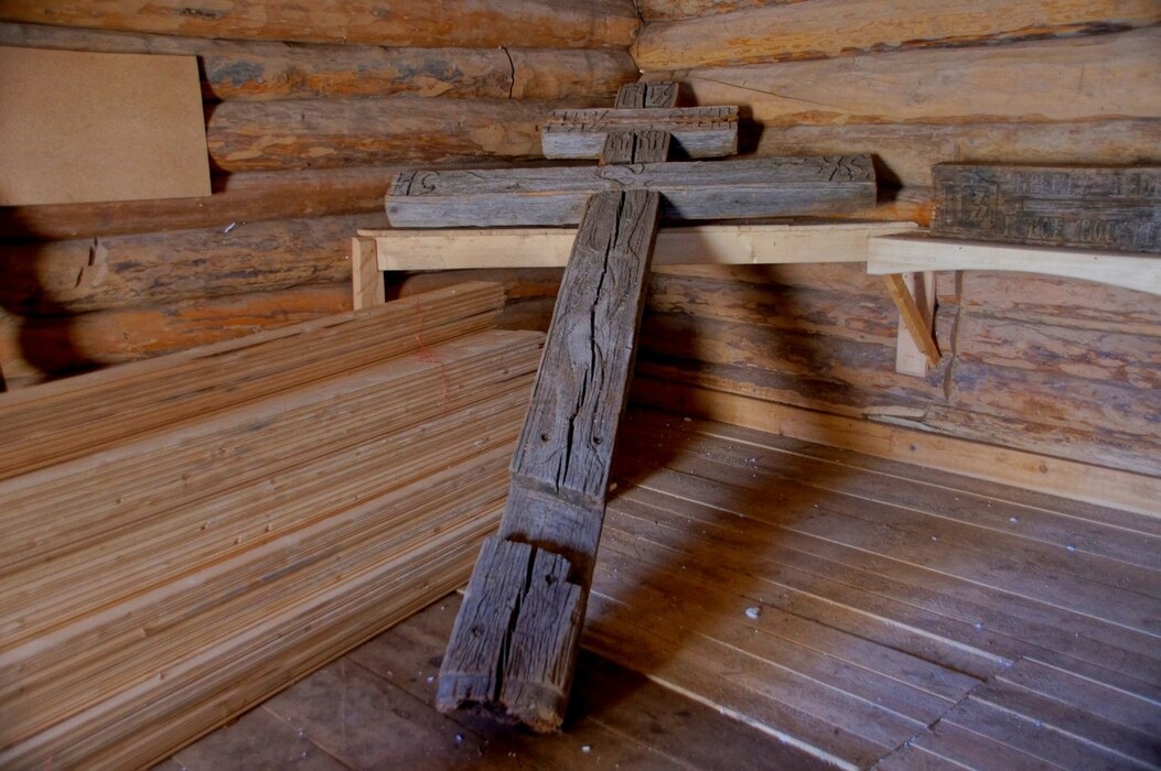 В окрестностях Кимжи испокон веков устанавливали много крестов – как в качестве оберегов, так и на местах захоронений. Со временем деревянные артефакты ветшали, их начали собирать в одно помещение – «Амбар крестов». На месте утраченных устанавливали новые кресты.