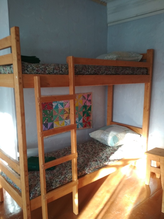 Гостевой дом «Приют путника» – это старинный, но при этом прекрасно оборудованный деревенский дом. Постройка объединила две больших смежных комнаты, в спальне три двуярусных кровати и двуместный диван. В доме есть душевая кабинка, туалет, СВЧ, термопот, плита, холодильник, телевизор, стиральная машина. Есть два отдельных номера – двух и трехместные. Здесь сохранена обстановка из первой половины прошлого столетия.