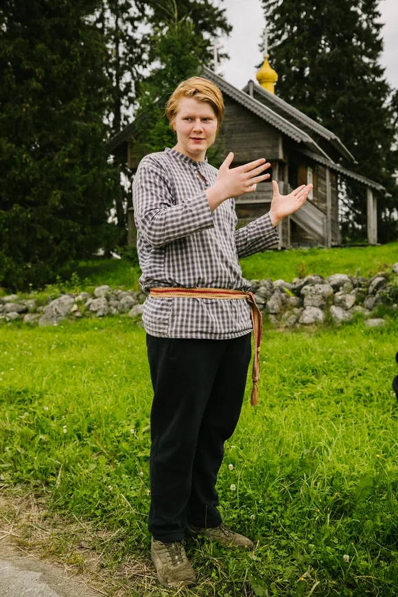 Младший сын Надежды, семнадцатилетний Егор проводит экскурсии. И, судя по отзывам отдыхающих, справляется со своими обязанностями на «ура». К слову, Егор работает местным экскурсоводом с семи лет. Иногда, чтобы обойти с гостями деревню и рассказать ее историю, мальчика даже снимают с уроков – он учится в соседнем селе Ведлозере. Говоря о Кинерме, Егор всегда вспоминают о своих предках: их прапрапрапрабабушка Дарья Осипова родилась здесь в 1799 году, то есть род мальчиков живет в деревне 222 год. Экскурсию могут провести на русском, карельском, финском и английском языках.