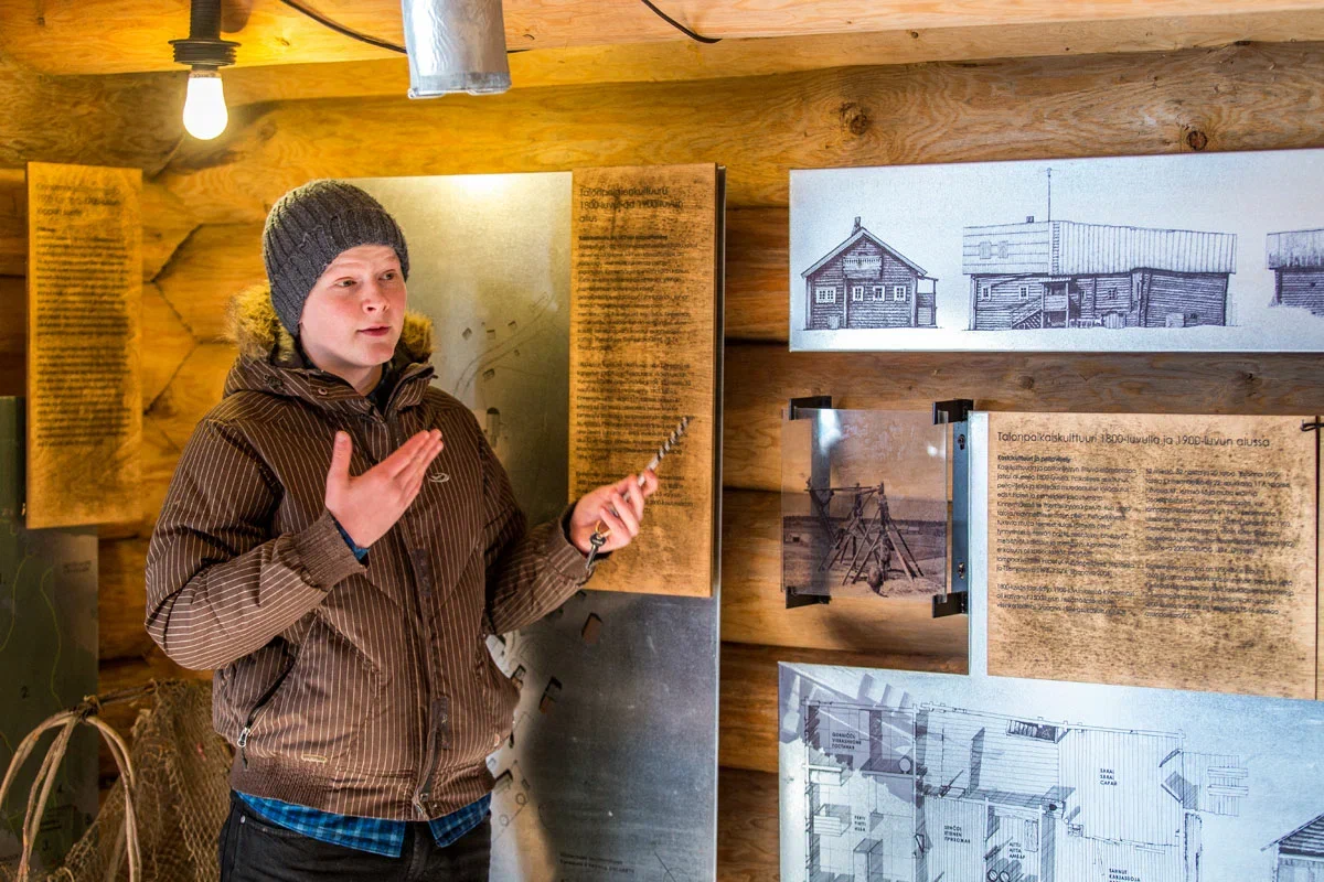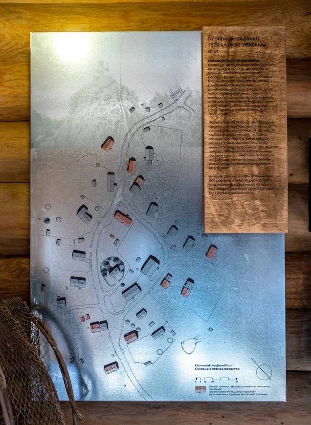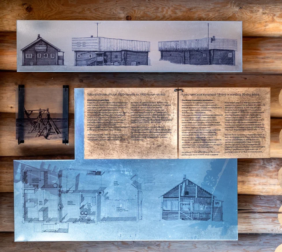 В отреставрированном доме открыты две музейные экспозиции – посвященная истории Кинермы и фотовыставка. Про судьбу деревни можно узнать на примере конкретных представителей рода Калмыковых – здесь представлено их родовое дерево. В верхней части жилища – гостевые комнаты, оформленные в интерьере традиционной карельской избы.