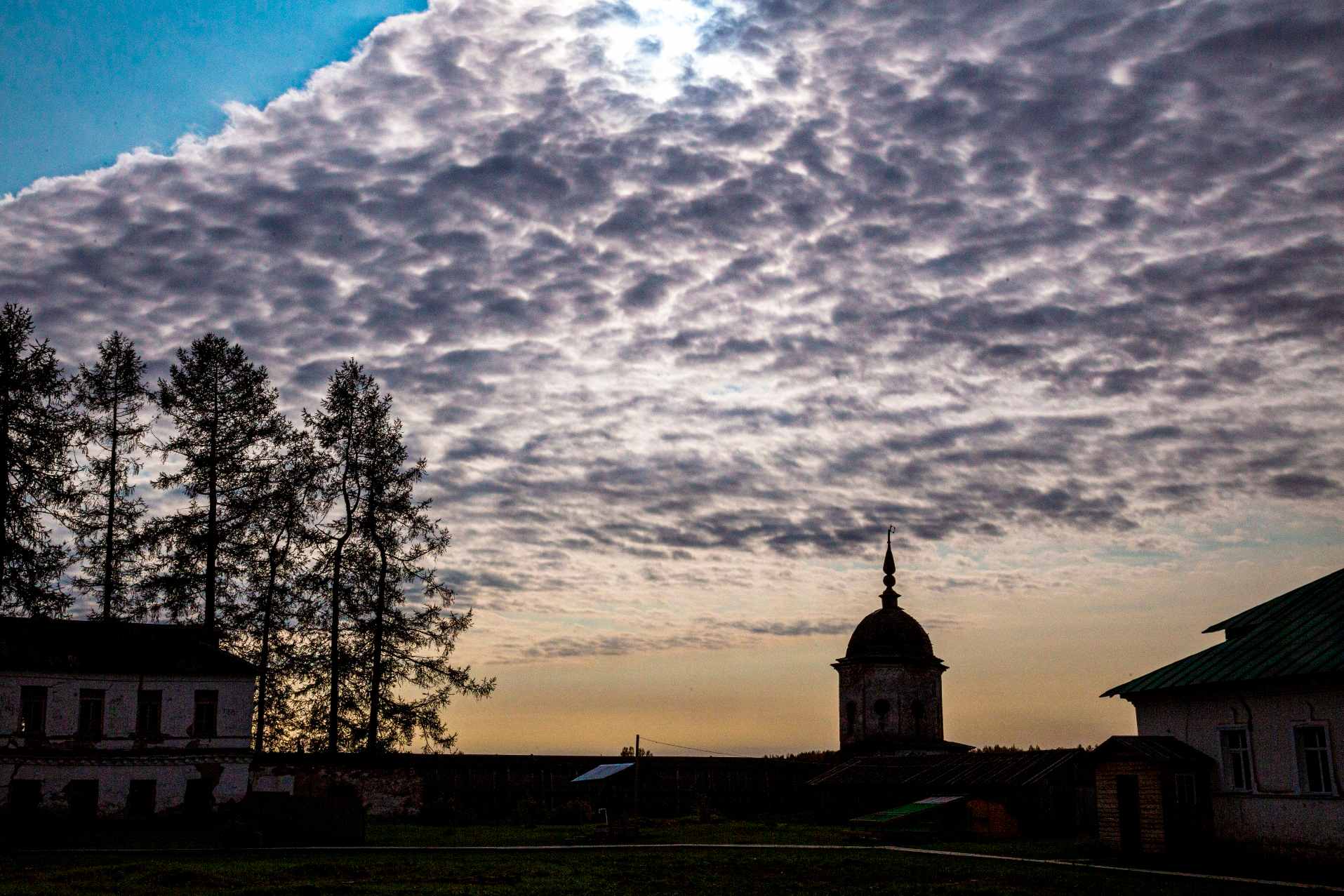 Монастырь был основан в 1460-е годы преподобным Александром Ошевенским — сыном Никифора Ошевни, который дал имя всей слободе и Погосту. Александр построил первый деревянный Никольский храм. В XVI веке была возведена ещё одна церковь — в честь Успения Богородицы. Позже оба храма сгорели, были восстановлены и сгорели снова — от удара молнии, и в начале XVIII века на этом месте стали возводить каменные постройки. Часть из них сохранилась до наших дней. Но память о деревянном монастыре и возможность увидеть, как он выглядел, сохранились благодаря многочисленным иконам с его изображением. Они получили широкое распространение в XVII веке и разносили по всей Руси славу о святом и его обители.