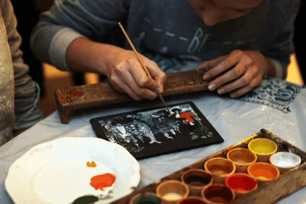 Проводит опытный художник, который на занятии подробно расскажет об используемых в работе материалах и деталях росписи. Можно в группе или индивидуально. После мастер-класса сувенир покроют лаком, его сразу можно забрать домой.