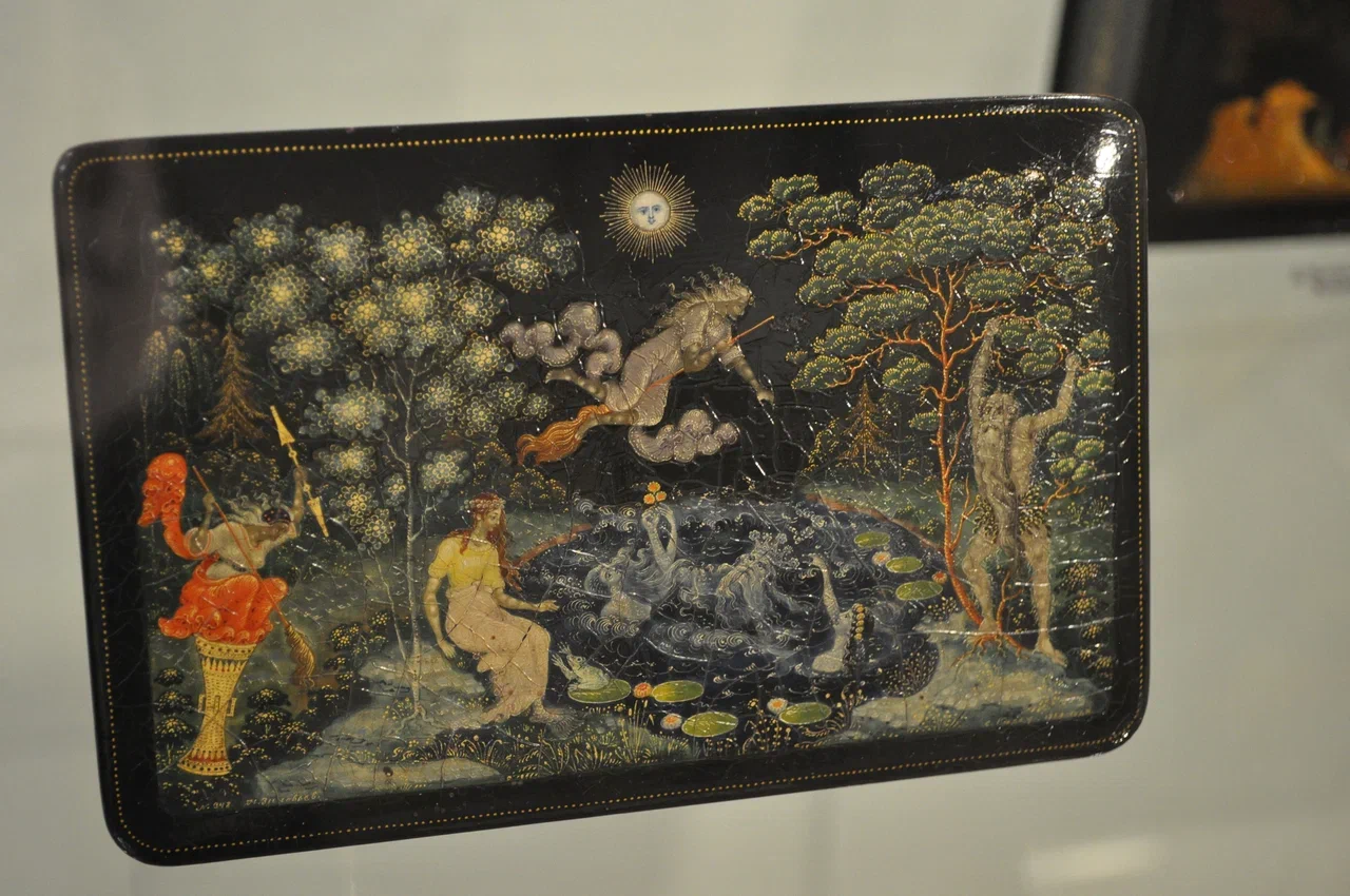 Сказочные сюжеты и персонажи, запечатленные на лаковых миниатюрах или в отдельных образах.