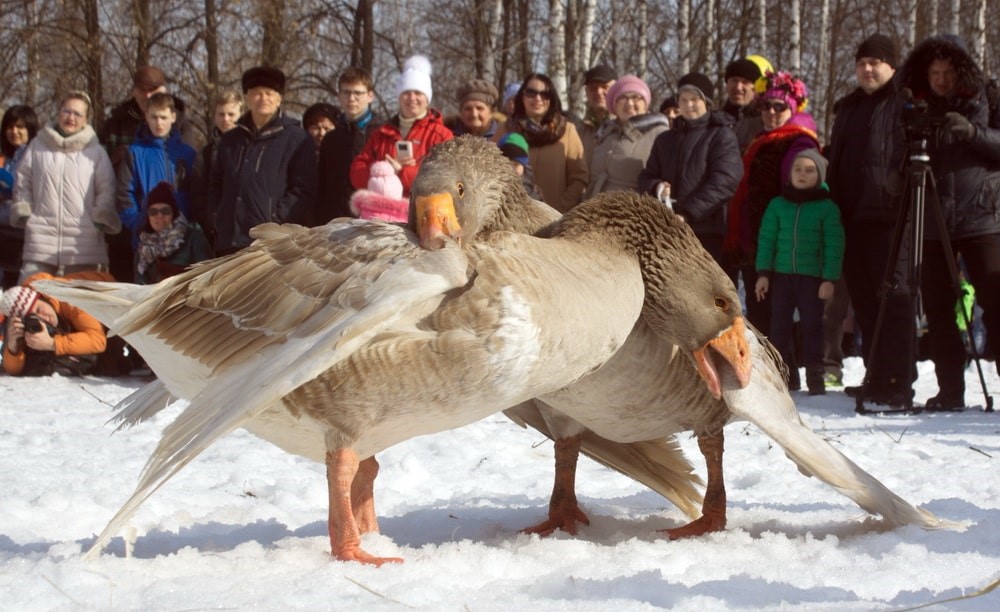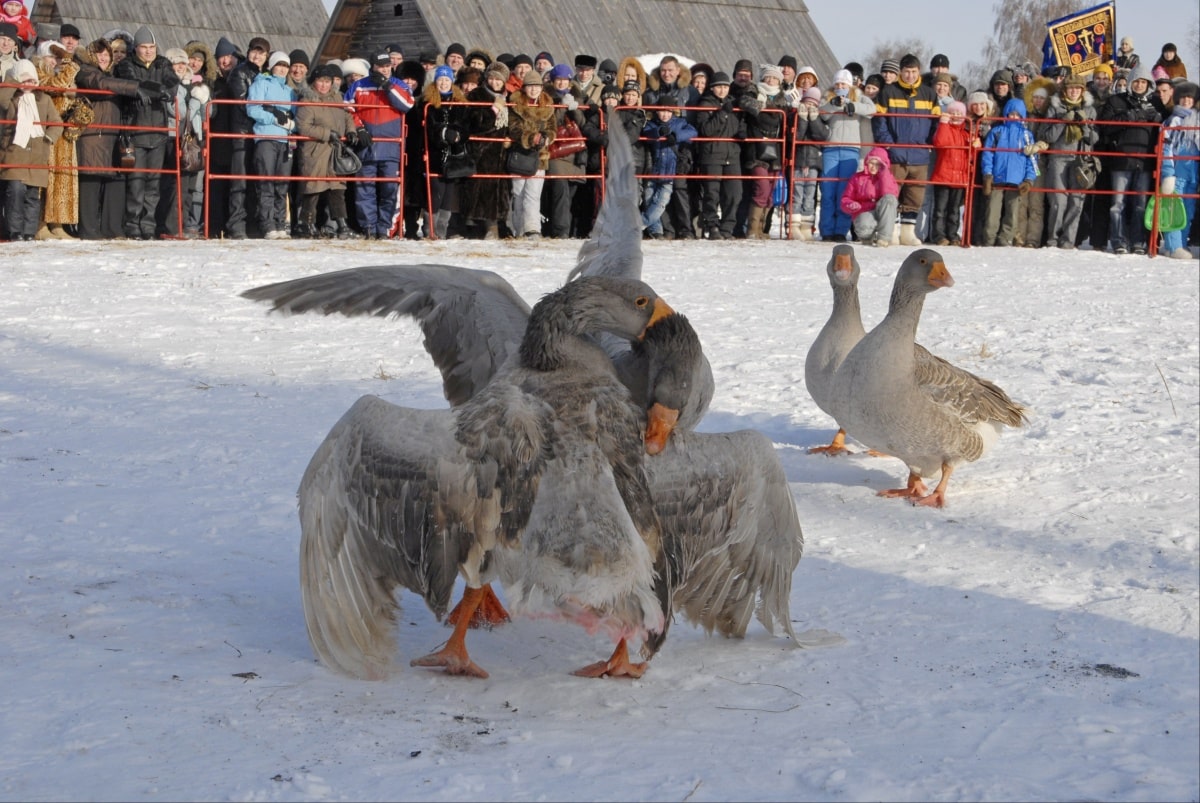 Гусиные бои также ежегодно организуют на Масленицу на территории Музея деревянного зодчества.