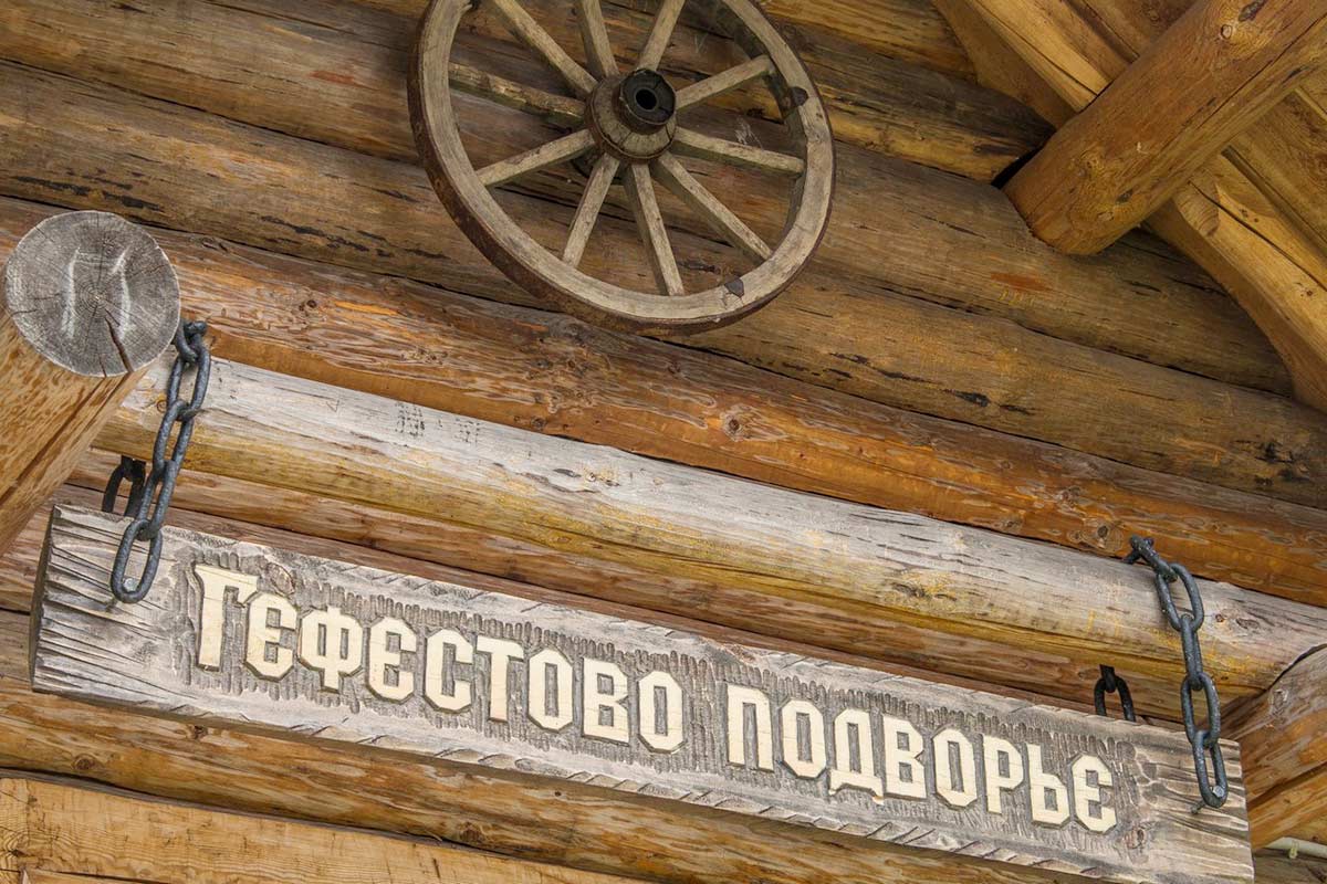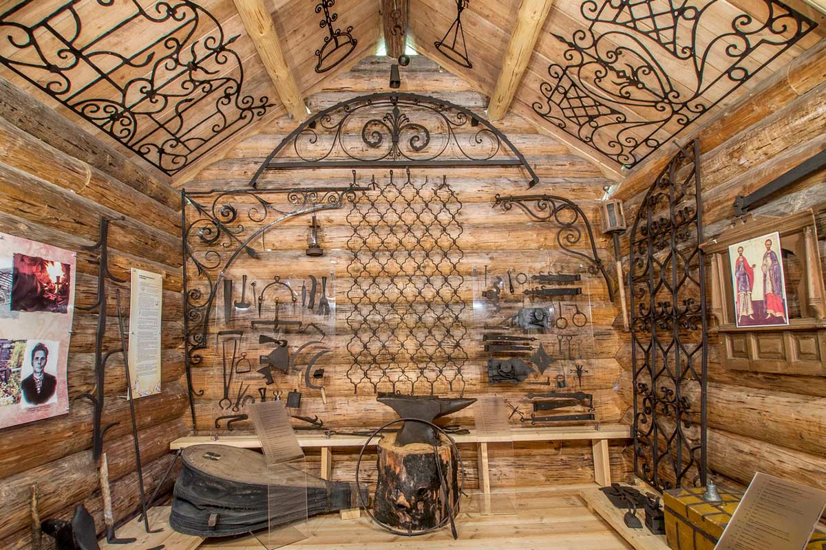 В «Гефестовом подворье» находится Музей кузнечного ремесла. «Кузнецу лихо, что в кузнице тихо» - это поговорка точно не про кузнецов Кенозерья. Люди, населявшие эти места, постоянно нуждались в орудиях, которые помогали им в хозяйстве, охоте и в быту. Ну а если выходил простой – кузнецы создавали удивительной красоты решетки для окон и дверей в храмах. В музее собраны образцы орудий, изготовленных древними кузнечными мастерами: косы, серпы, топоры, вилы, лопаты, капканы, крючки, багры, кочерги, ухваты для чугунков, противни, заслонки, самоварные трубы, дверные ручки и т.д.