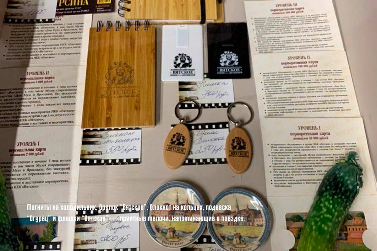 Представляем большой выбор ремесленной продукции, созданной с душой искусными мастерами. Здесь Вы можете приобрести соленые вяские огурцы и другие местные деликатесы, книги, брошюры и издания, посвященные селу Вятское, предметы интерьера, а также сувениры и приятные сердцу мелочи, которые будут напоминать о поездке в самое красивое село России.