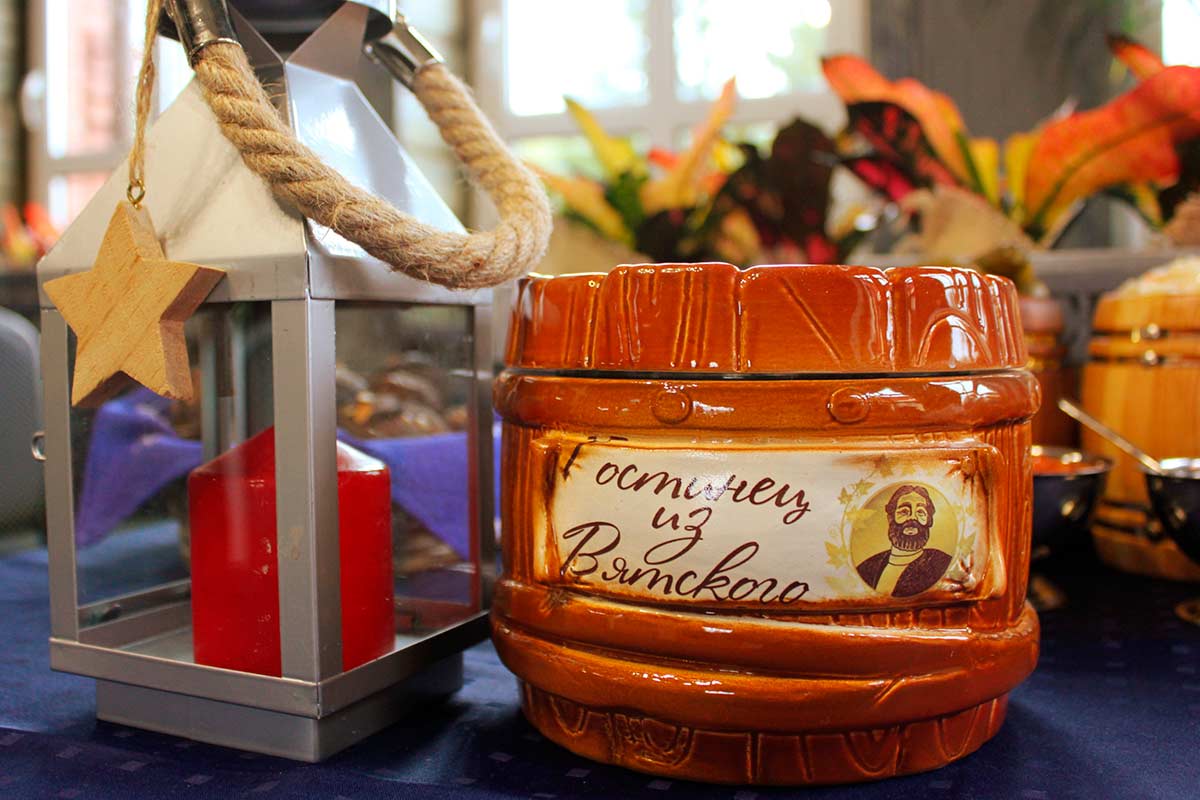 В лавке Дома-музея торгующего крестьянина Горохова можно приобрести приятные и полезные местные гостинцы. Запоминающимся подарком для друзей, родных и коллег станет стильный керамический бочонок с вятскими солеными огурчиками. Тем более, что он выполнен в эксклюзивном дизайне, по современным технологиям, из материала наивысшего качества.