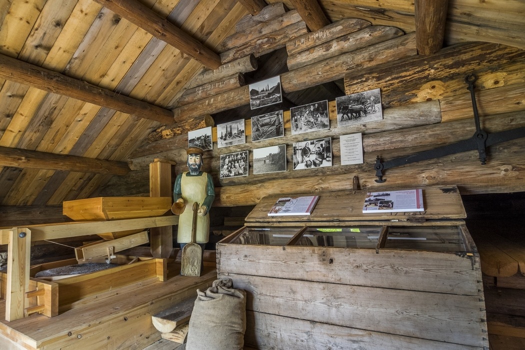 Экспозиция знакомит посетителей с механизмом мельницы, историей мельничного промысла на Кенозерье, орудиями труда, связанными с земледелием, традициями хлебопечения.